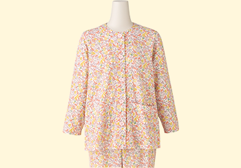 着脱がラクな設計。寝たまま、座ったままでも着替えやすい、機能的なパジャマです。