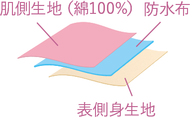 肌ざわりさらさら、伝いもれしにくい設計。