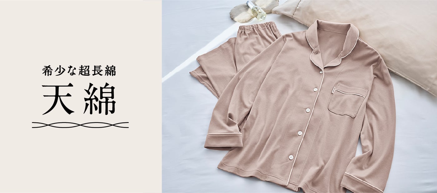 身につけた瞬間に心ときめく、希少な「天綿」ならではの極上の肌ざわりは、手間ひまが織りなす、いわば匠の技ものなのです。