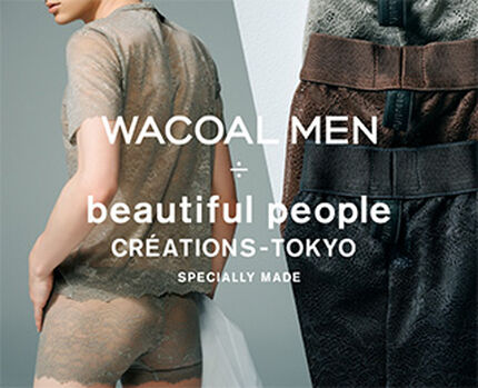ファッションブランド「beautiful people」とコラボした【レースボクサー】が新登場!ワコールメンならではの透け感のある花柄レースが魅力的♪ 男女ともに自由に楽しめるユニセックスタイプでのご用意です。