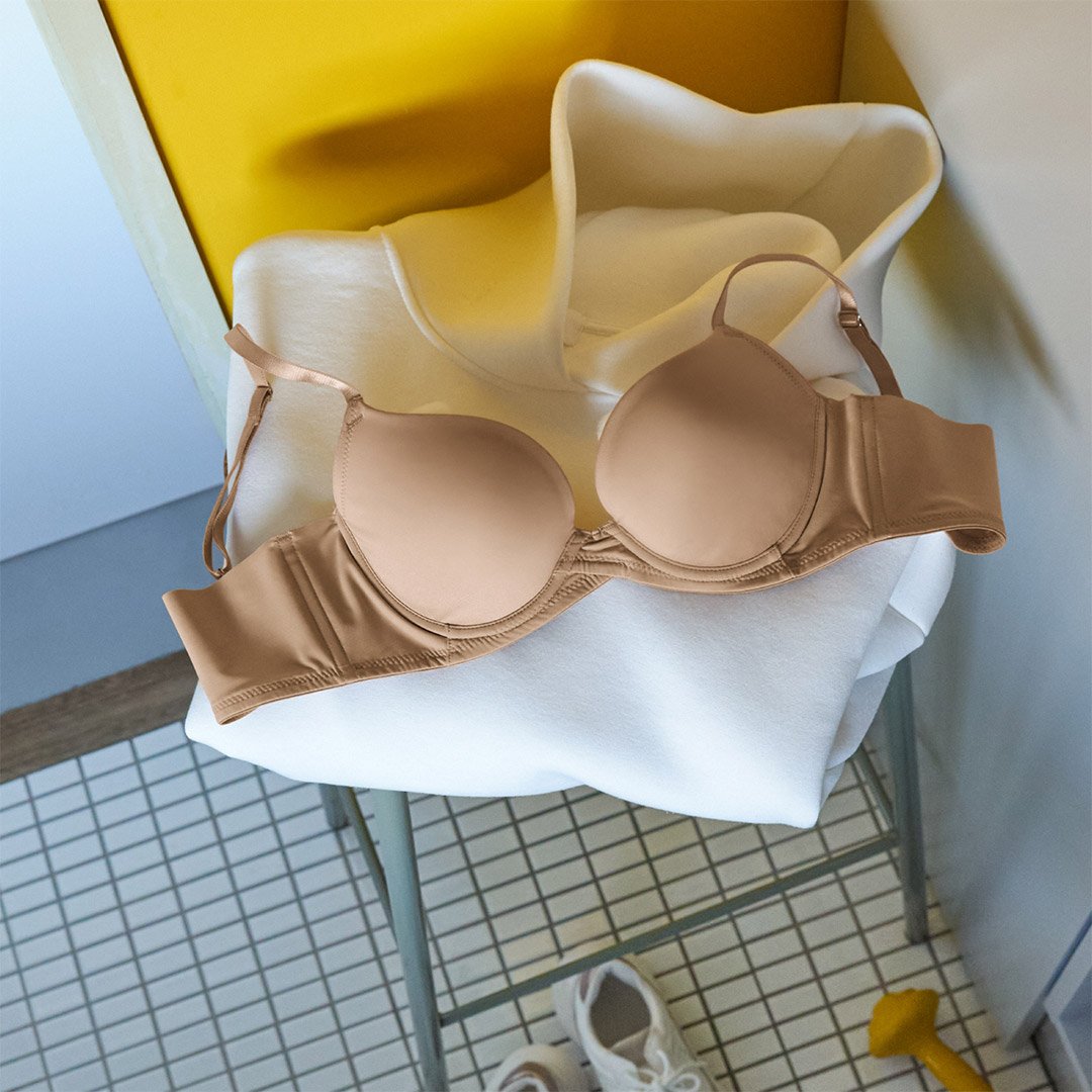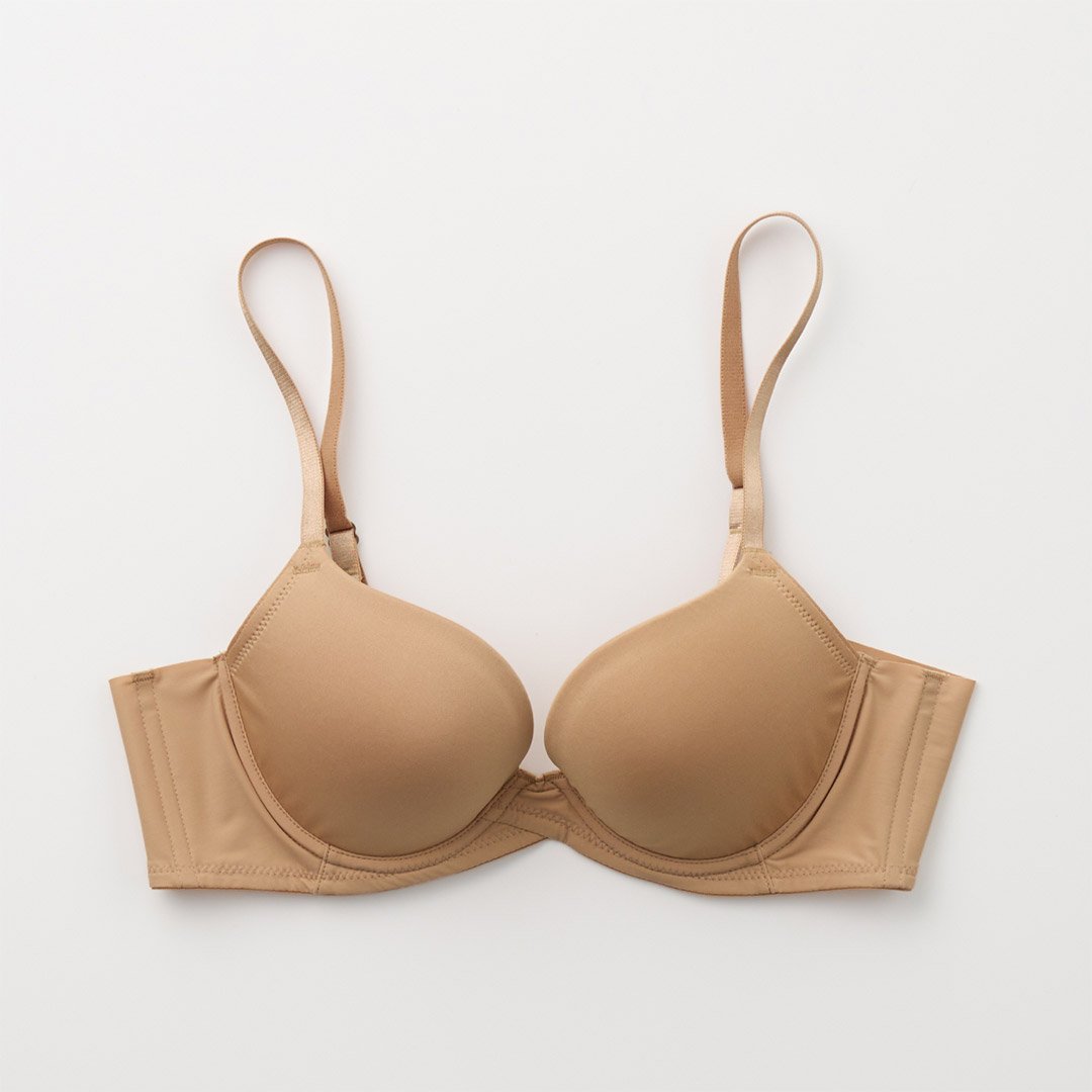 体型を隠す黒色系のふわっとしたシャツやワンピースばかり着ていましたが最近運動を始め、かなり身体が引き締まったので、久々に白い服が着たくなりました。が、持っていたブラは色味が強かったりレースがついているものが多く白いTシャツに響いて着れないためこちらの商品を購入。結果、全くTシャツやブラウスに響くことなく安心して使えました。若い時に、散々レースの綺麗な見栄えのいいブラを選んでいたので、自分がこのようなデザインのブラを選ぶ日が来るとは考えてなかったのですが(笑)