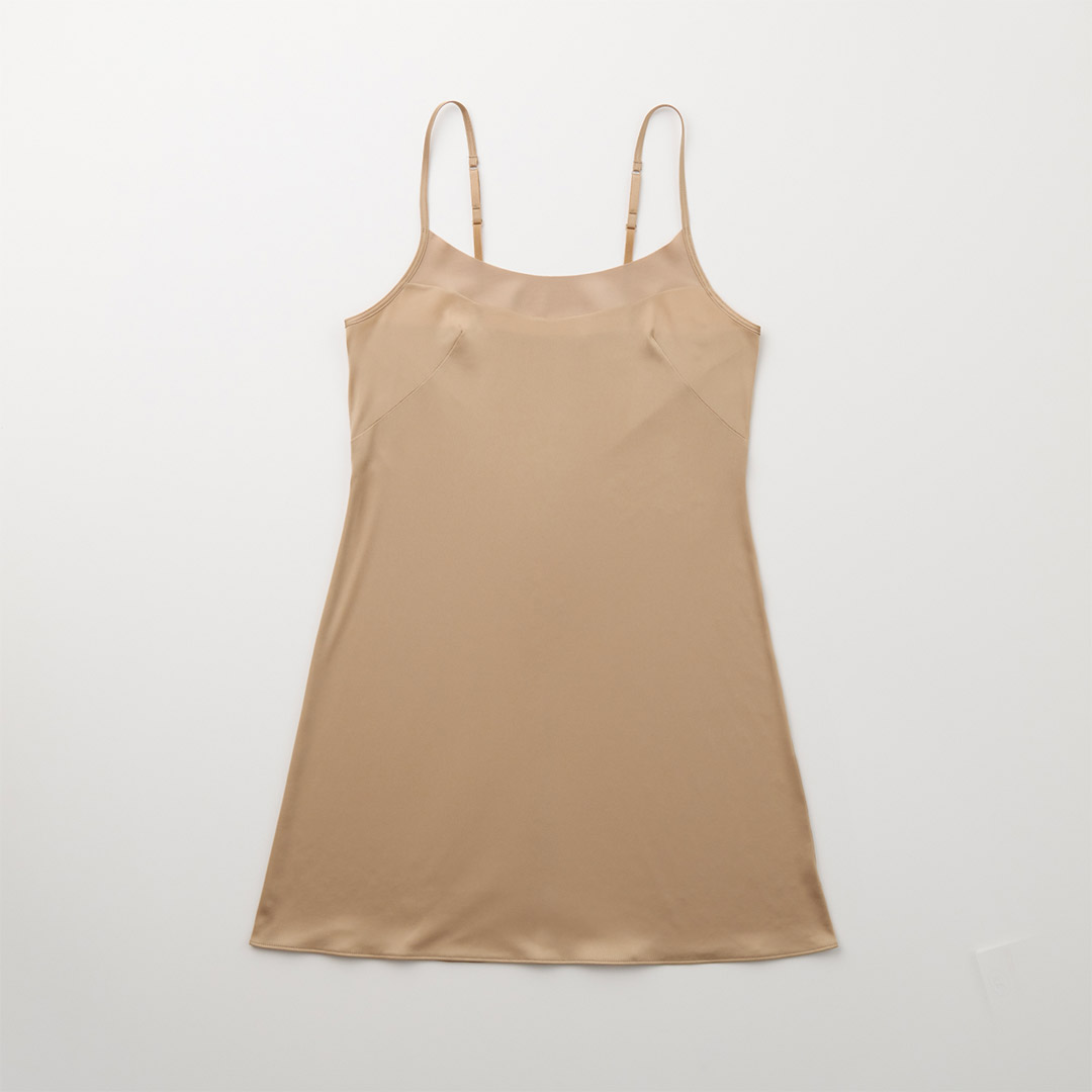 薄くてサラサラなワンピースタイプのこちらは胸元が切りっぱなしの生地になっていて、アウターに響きづらい薄着の季節にぴったりの超優秀アイテム♡160cmでM80丈を着用していますが丈感は太ももの真ん中くらいまでで脇や胸元もアウターから、はみ出して見える事もなかったです。