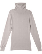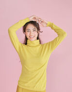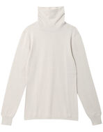・ネックや袖口、裾はセーターのような端仕様でフラットで肌当たりやさしい。