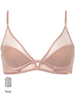 前側の高さのないL字ワイヤーを使用し、前中心の圧迫が少なく、バックはやわらかなパワーネット仕立てで軽やかにフィット。スタイルと快適さが融合されたベーシックなブラジャー