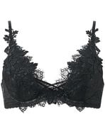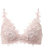 前側の高さのないL字ワイヤーを使用し、前中心の圧迫が少なく、バックはやわらかなストレッチリバーレース一枚で仕立て、軽やかにフィット。
