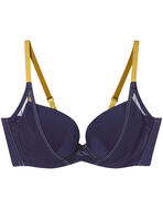 ストラップまで続くパーツで引き上げ、ギュッと抱き寄せ、谷間メイク