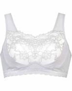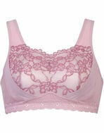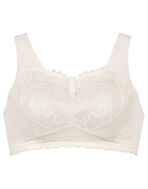 「寝ている間のバストが気になる」「苦しいのはイヤだけど、夜もちゃんとバストケアしたい」という方におすすめです。本体はやさしい肌あたりの綿混素材で、睡眠中のバストにやさしいラクなつけごこち。胸もとにレースを飾って、おやすみタイムも華やかに。