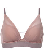「重力ケアブラ ノンワイヤー」のシンプルタイプ。しっかりホールド感があるのに、解放感のあるラクなつけごこちが魅力です。モールドカップが自然なまるみをメイクし、機能性と使いやすさを兼ね備えています。アンダーのゴムを太めにすることで下着っぽさを感じさせないカジュアルな印象に。透け感のあるパワーネットを使用し、トレンド感のあるデザインに仕上げました。カップのパワーネットはレーシィタイプと比べ低い位置に設計し、胸もとのあいたトップスからも見えにくくおすすめです。