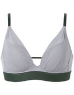 モールドカップ肌側の厚みで、バストを押し上げ、ボーンとカップ脇の切り替えで、ピタッとフィット