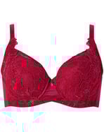 ストラップまで続くレースで引き上げ、ギュッと抱き寄せ、バストメイク