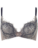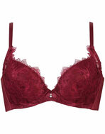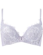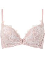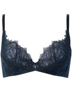 ストラップまで続くレースで引き上げ、ギュッと抱き寄せ、谷間メイク