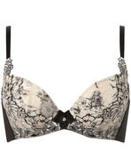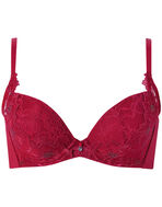 ストラップまで続くレースで引き上げ、ギュッと抱き寄せ、谷間メイク