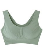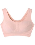 2、パッドを抜いて・・・圧迫感を感じにくいやわらかく伸びる生地2重のカップで、くつろぎタイムやおやすみの時にもおすすめ。
