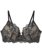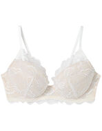 お顔の陰影をつくり出す化粧品発想で、バストの立体感をメイクするブラ。プッシュパッドでバストを下から持ち上げて、光が当たったようなふっくらデコルテと、美しい谷間の影を創出。まるくきれいなバストシルエットはもちろん、気になるブラのズレや浮きも軽減する、下着メーカーならではの独自設計も。透け感の美しい繊細な編みレースに、ストーリーやトレンド感のあるこだわりのカラーをのせたコレクションシリーズ。