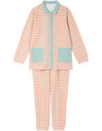 ・ギンガムチェックプリントと、トップスの無地配色がポイント
