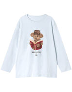 ●イラストプリントが愛らしい、ロングスリーブTシャツスタイルのパジャマトップス