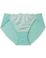ハイライトブラ(CB4000)とペアコーデが楽しめる、フロントのレースや色づかいが美しいショーツ。身生地部にはフィット性がよくソフトな風合いの素材を使い、やさしいフィット感に。透け感の美しい繊細な編みレースに、ストーリーやトレンド感のあるこだわりのカラーをのせたコレクションシリーズ。