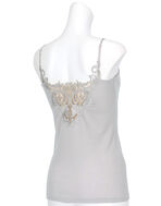 存在感のあるケミカルレースを背中にあしらったキャミソール。