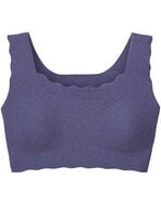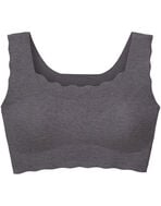 伸びのよい素材を使用し、接着手法によるフラット仕上げで肌に縫い目があたらないハーフトップ