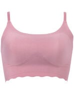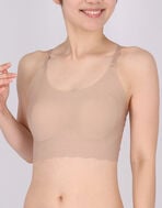 立体感と厚みのある左右一体型のピーナッツ型パッド内蔵(取りはずし可能)で、上向きで立体的なバストシルエットでありながら、バストトップ間隔が離れず位置が安定