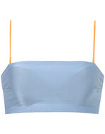 インナーとしてはもちろん、重ね着を楽しむレイヤードアイテムとしても一役買ってくれる一枚。カップとストラップがそれぞれ取りはずせるので、ビスチェとしてTシャツの上に重ねたり、シアー感のあるトップスの中に仕込ませたりなど、さまざまなシーンで活躍します。両サイドのダーツや背面のホック仕様で、コルセットのようなデザイン性とフィット感のあるここちよい着ごこちを演出。ツヤのあるシャンブレー素材もスタイリングのアクセントに。