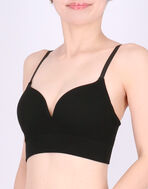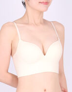 立体カップと伸縮性のある本体素材でさまざまな体型にフィット。トップ位置が離れにくくほどよい造形性できれいなシルエットに