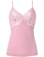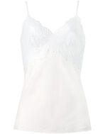 ・胸もと下辺と背中は丁寧にカットされたストレッチリバーレースの透け感が美しいキャミソール