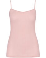 特殊な紡績方法により、綿と吸汗速乾性のあるポリエステルを交編し撚りをかけた糸を使用した、少しシャリ感のある薄くて軽い綿混リブ素材