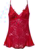 特別な日をゴージャスに演出する華やかなキャミソール。ディテールにこだわった繊細で優雅なデザインが魅力。透け感が上品なレースと軽やかに揺れるシフォンの調和を特徴的に表現しました。シンプルなカラーリングの中で存在感を放つカメオ風チャームがアクセント。胸もとを飾る優美なアップリケはバラの花をイメージしました。大胆にあいたバックスタイルでセクシーなエッセンスをプラス。