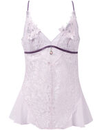 ホリデームードを高めるゴージャスなキャミソールは、カラーによって色が異なるカメオ風のチャームつき。