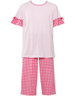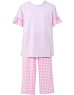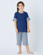 ●ギンガムチェック柄の袖フリルとボトムがカジュアルでかわいいパジャマ