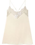 ●サテン生地とラッセルレースを組み合わせたキャミソール。