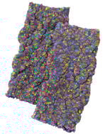 かすり調の糸で編み上げたプチウォーマー。ひじや足首に便利な小さめサイズ。