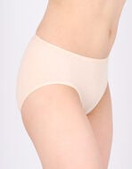 季節を問わず毎日のお気に入りにしたい、ムレにくく伸縮性のあるやわらかな肌ざわりのデイリーショーツ。シンプルだけどニュアンスのあるリブ素材が、さりげなくおしゃれ。生地の一部にはリサイクルナイロンを使用しています。脇に縫い目がないので肌あたりもやさしく、ウエストと裾まわりには、よく伸びるやわらかなゴムを使用し、しめつけ感を軽減したフィット感に仕上げました。飾らず自然のままのびのびと過ごしたい毎日に、ここちよく寄り添うショーツを目指しました。