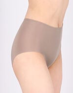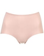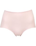 アウターにひびきにくいフリーカッティング仕様のショーツを、より素肌にここちよく快適に。そんな思いから、細部までやさしい肌あたりにこだわった、希少な綿を使用した綿混素材のフラットショーツ。独自の立体設計で、フリーカッティングショーツにありがちなズレ上がりを軽減。取扱い表示は本体素材にプリントしているから、肌あたりやさしく。脇に縫い目がなく、ウエストや裾にゴムを使わないフラットなふかめ丈で、やさしくフィット。身生地には吸放湿性と制電性があり、ムレや静電気のパチパチをおさえて快適に。しめつけ感が気になる大人にうれしい、軽やかなはきごこちを目指しました。