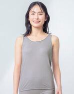 汗やムレが気になる季節も、肌に一枚重ねるだけで軽やかなやさしさに包まれる機能性インナー。薄手で軽く伸びやかなオーガニックコットン混素材を使用。天然素材ならではのやさしい肌ざわりを生かしながら、古着や裁断くずを再生したリサイクルポリエステルを使用し、薄く軽く伸びのよい着ごこちに。生地の編み目を旧品番のものより細かく改良しました。吸汗速乾性や通気性がよく、さらに抗菌防臭機能をプラスして快適性を追求。アウターになじみのよいカラーと、襟ぐりの細ステッチ仕上げは下着感が少なく、首もとからチラリと見えてもOK。軽やかでやさしい肌ざわりをぜひ体感してください。