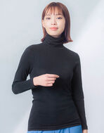 直接肌に触れるものだから、あったかインナーはやっぱり肌ざわりのよさで選びたいという方におすすめ。肌側をオーガニックコットン100%で仕上げた伸びやかな綿混素材で、やさしい肌ざわり。吸湿発熱性や、保温性、吸放湿性のある素材だから、ムレにくくあたたかな着ごこちを楽しめます。脇の縫い目を無くすことで、肌あたりにも配慮しています。静電気が起こりにくいパチパチしにくい素材を使用。さらに抗菌防臭加工をほどこし、生乾き臭制菌性も備えているので、生乾きのいやなにおいの原因菌の増殖を抑制してくれます。ニットやシャツの下に一枚はさむだけで、首まわりまですっぽり、やさしいぬくもりで包みこむタートルネックインナーを冬のおしゃれの相棒に。