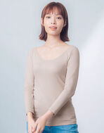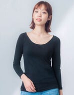 直接肌に触れるものだから、あったかインナーはやっぱり肌ざわりのよさで選びたいという方におすすめ。肌側をオーガニックコットン100%で仕上げた伸びやかな綿混素材で、やさしい肌ざわり。吸湿発熱性や、保温性、吸放湿性のある素材だから、ムレにくくあたたかな着ごこちを楽しめます。脇の縫い目を無くすことで、肌あたりにも配慮しています。静電気が起こりにくいパチパチしにくい素材を使用。さらに抗菌防臭加工をほどこし、生乾き臭制菌性も備えているので、生乾きのいやなにおいの原因菌の増殖を抑制してくれます。フロントはUネック、バックはVネックでアウターに合わせて前後どちらでも着用可能です。