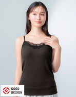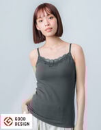 ブラトップでラクしたい日のお出かけにもぴったりなリブ素材で、胸もとの繊細なレースが上品で華やか。高めに設定したネック・広めの身幅など洋服とのコーディネイトに取り入れやすいこだわりの設計です。