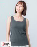 ブラトップでラクしたい日のお出かけにもぴったりなリブ素材で、高めに設定したスクエアネックや広めの身幅、ネック・アームホールの袋縫い仕様など洋服感覚でアウターライクな着こなしが楽しめるこだわりの設計です。