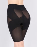 クロスバック構造で、エイジングによって内側にたるんだヒップ下をキュッと上向きのヒップに引き上げる