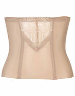 ●ミドリフ丈(みぞおち丈)ブラ(BQB400、BQB600)やジャストウエストガードル(GQC400)とコーディネイトした場合の重なりを計算した丈設定で、動いてもしっかり重なり、境目からあまったお肉がはみ出さない