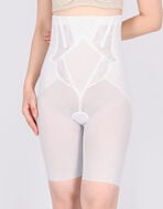 幅広テープと前後4本のボーンで高いウエスト位置に安定させ、しっかりくびれメイク