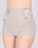はきこみ丈を通常のジャストウエストより高めの丈にすることで、おなか・ヒップのリフトアップ効果を高め、よりスリムなシルエットを追求。さらにヒップ下はパワー切り替えのない素材で、たるみをぴったり包み、美しいシルエットをキープ