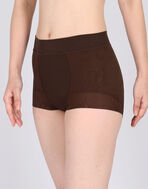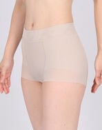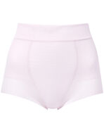 通気性のよいパワーネットの裏打ちで、下から引き上げ、高くヒップアップ。伸縮性のない裏打ち生地で、おなかを押さえて、下腹部もすっきり