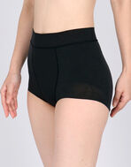 ウエストまわりは折り返しの上辺布で、ゴムを使用していないため、くいこみにくく気になる段差を軽減