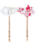 ひらりとウエストを飾るレースの愛らしさにときめいて。多くの歴史や芸術が息づく博物館のように美しい都市、ローマの魅力を表現した上品なガーターベルトです。ローマ建築特有のアーチやドーム、柱の装飾からインスピレーションを受けた繊細なレースを飾って神秘的な仕上がりに。フロントには羽飾りをイメージしたアップリケを大胆にあしらいました。コーディネイト着用時により華やかさをプラスできるアイテム。ロマンティックな色合いが、まるでタイムスリップしたような気分へと誘います。