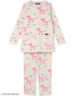 ポケットからのぞく黒猫がかわいらしい あったかパジャマ