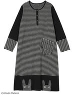 裾からひょっこり顔を出し、驚いた表情のうさぎのキャラクターをアップリケで表現。