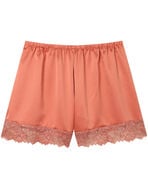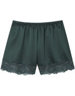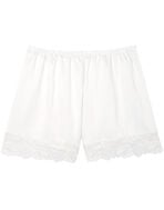●光沢感のあるサテン生地を本体に使用し、裾にはラッセルレースをほどこしています。